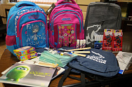 В ярких рюкзаках постарались собрать все самое необходимое: тетради, ручки, альбомы для рисования, краски, простые и цветные карандаши, фломастеры, линейки, транспортиры, стирательные резинки. Также к наборам канцелярии добавили компактные рюкзаки для сменной обуви.