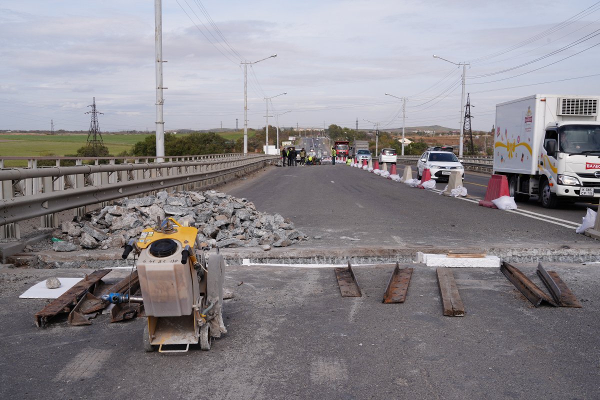 Специалисты уже демонтировали асфальтобетонное покрытие, пришедшие в негодность деформационные швы и разрушенный слой бетона.