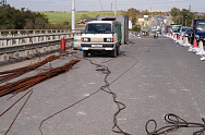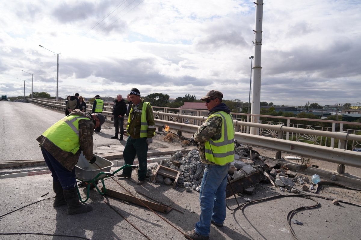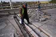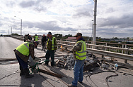 В настоящий момент перекрыты две из четырех полос моста – работы ведутся на том участке, который был разрушен сильнее.