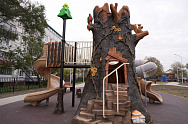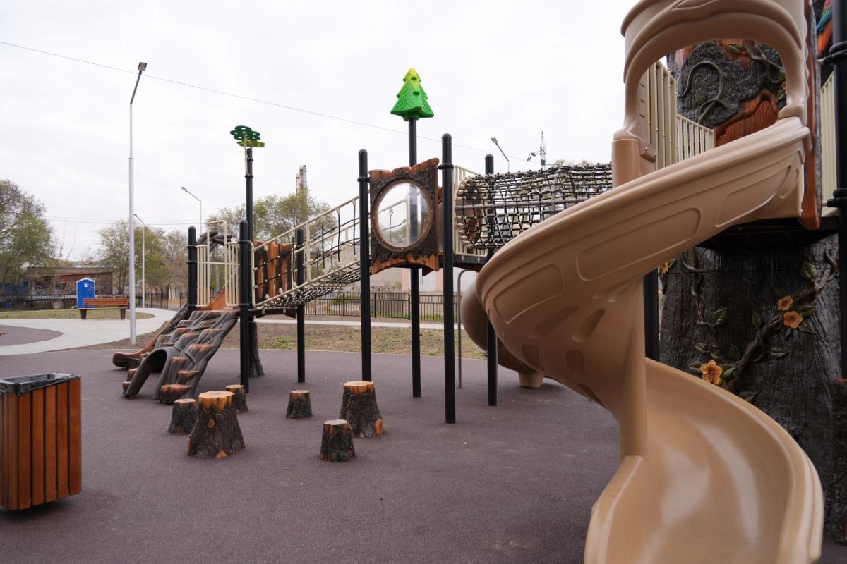 Игровые зоны рассчитаны на детей разных возрастов, поэтому занятие по душе найдут как малыши, так и ребята постарше. Сквер оборудован игровыми комплексами, воркаут-зоной, качелями, батутами, малыми архитектурными формами, лавочками и урнами.