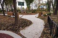 Представители подрядной организации отмечают, что отличительной особенностью проекта стали пешеходные дорожки, которые залиты не сплошным слоем бетона, а небольшими участками.