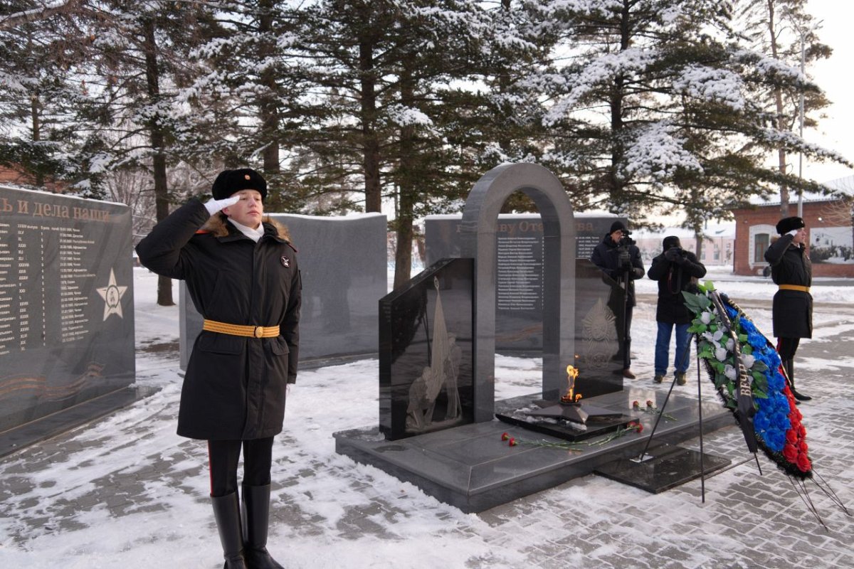 По традиции, в начале мероприятия присутствующие почтили память выпускников, погибших в военных конфликтах, возложив цветы к мемориалу на Аллее Памяти.