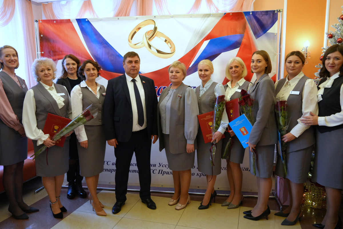 Сегодня состоялось торжественное поздравление работников управления ЗАГС администрации Уссурийского городского округа Приморского края с их профессиональным праздником. Председатель Думы Уссурийского городского округа Александр Черныш выступил с поздравительной речью.