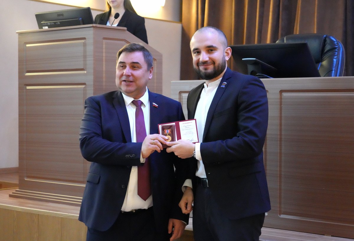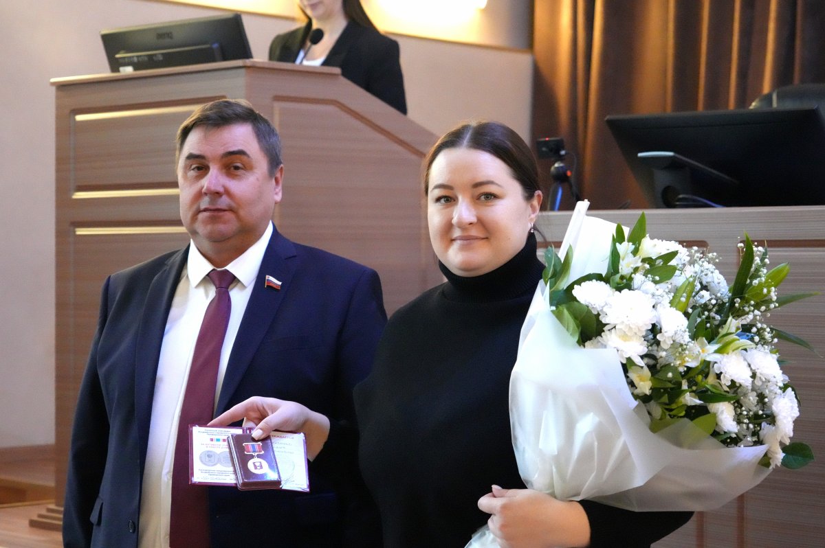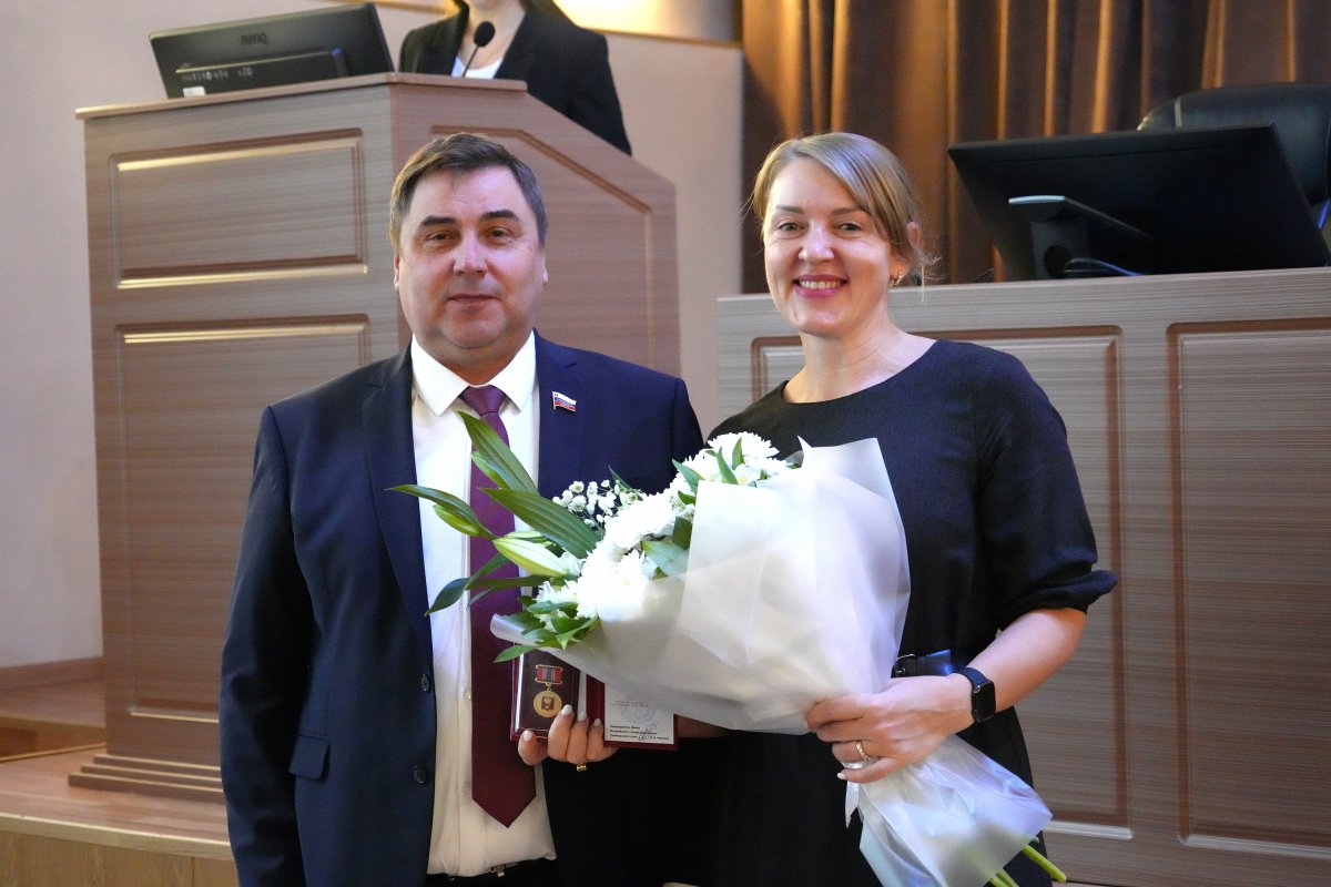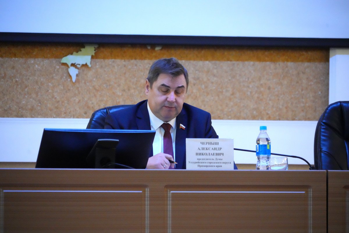 В завершении заседания председатель Думы Уссурийского городского округа Александр Черныш выразил благодарность коллегам-депутатам за эффективную командную работу в 2025 году и вручил Почетные знаки Думы УГО «За активное участие в работе Думы» наиболее активным представителям депутатского корпуса.