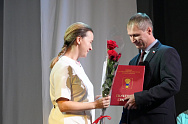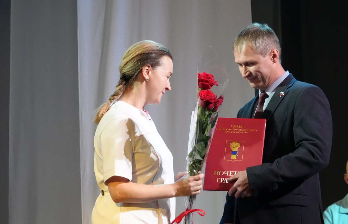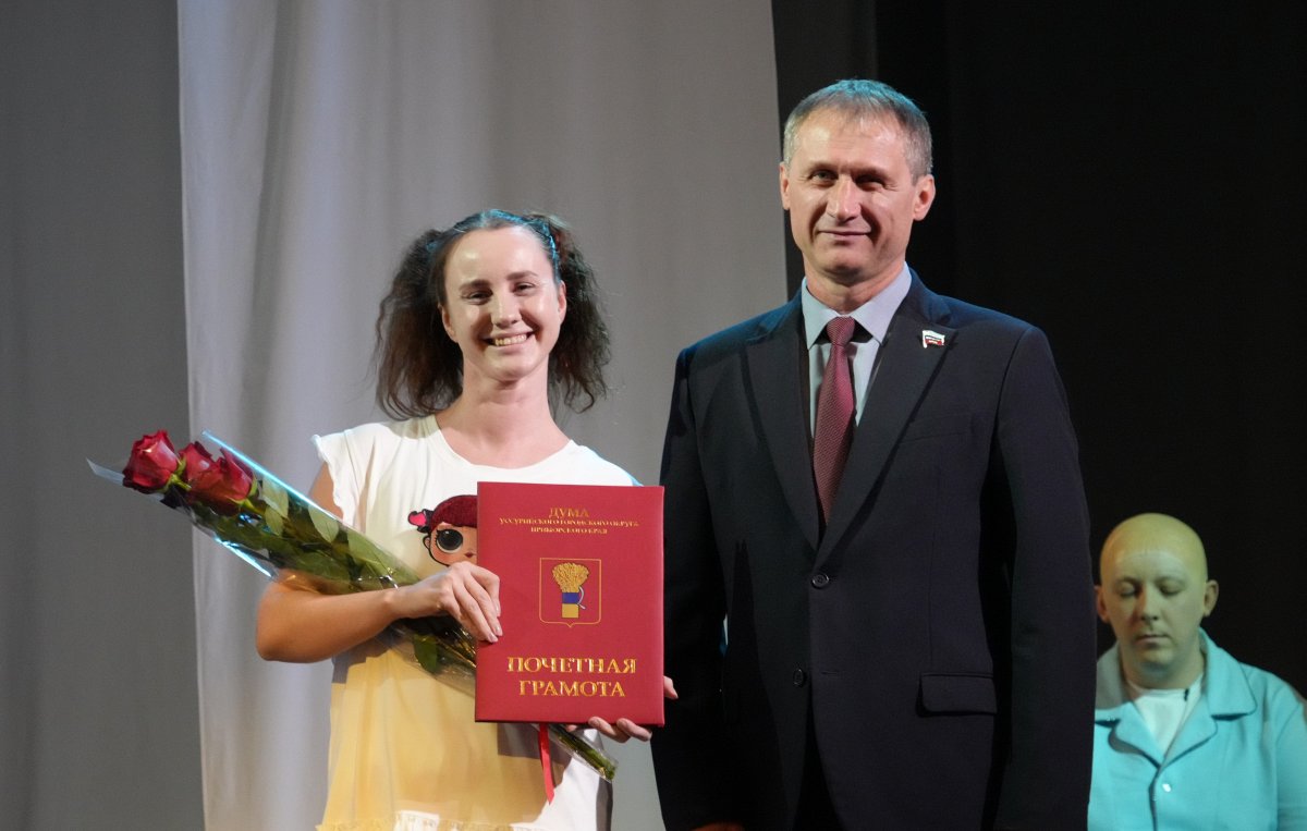 Тёплые поздравления и слова благодарности прозвучали в адрес театральных работников. Заместитель председателя Думы Уссурийского городского округа вручил благодарности сотрудникам театра за преданность профессии и вклад в культурную жизнь города. Особо были отмечены артисты Анна Александрова и Анна Герус, получившие Почётные грамоты за многолетний добросовестный труд и значимый вклад в развитие театрального искусства на территории округа.