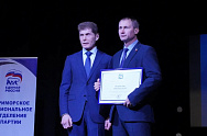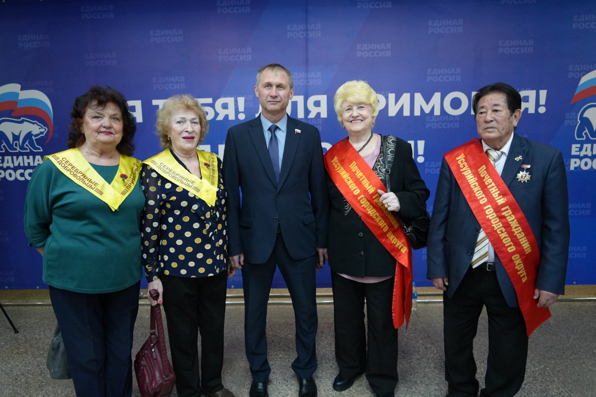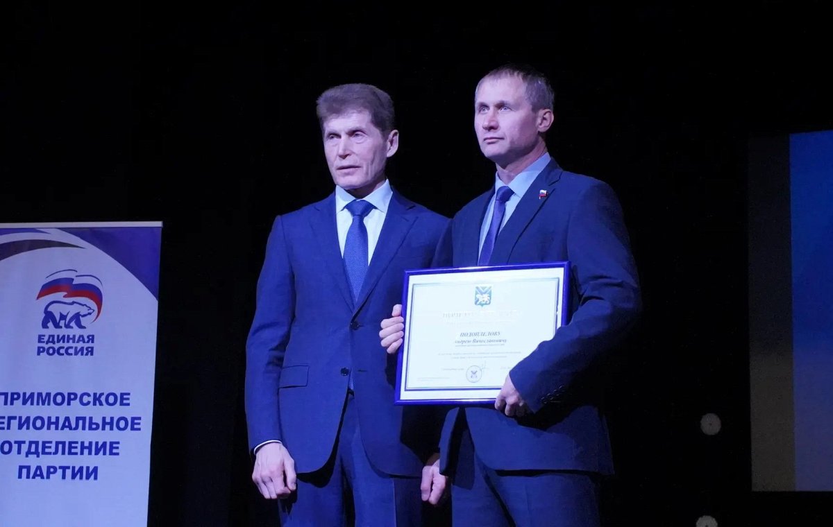 В заключении работы форума губернатор Приморского края наградил активных общественных деятелей нашего округа, среди которых заместитель председателя Думы УГО Андрей Подоплелов, который получил Почетную грамоту. Также Олег Кожемяко лично вручил партийные билеты новым членам партии «Единая Россия».