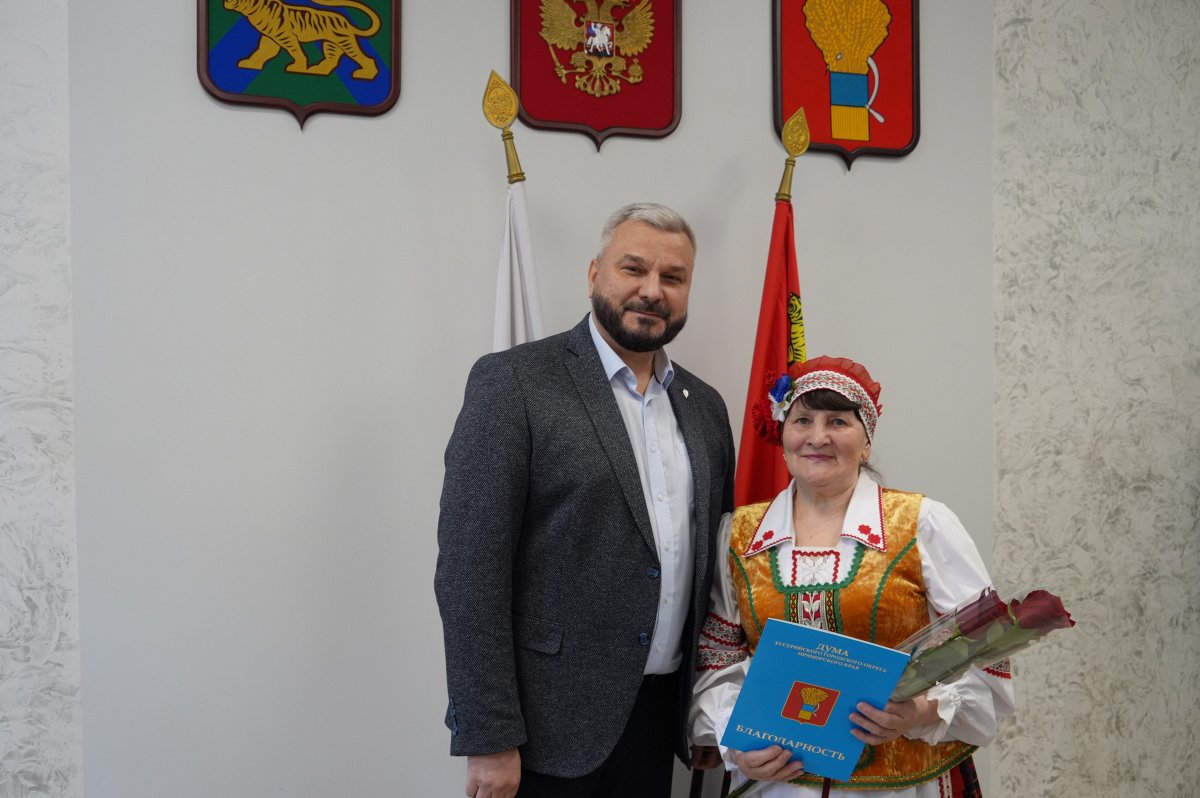 Депутат Думы Уссурийского городского округа Сергей Александрович Клековкин вручил Почётные грамоты и Благодарности Думы членам общественной организации «Белорусы Приморья» за вклад в укрепление дружбы между народами.