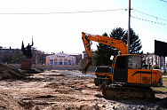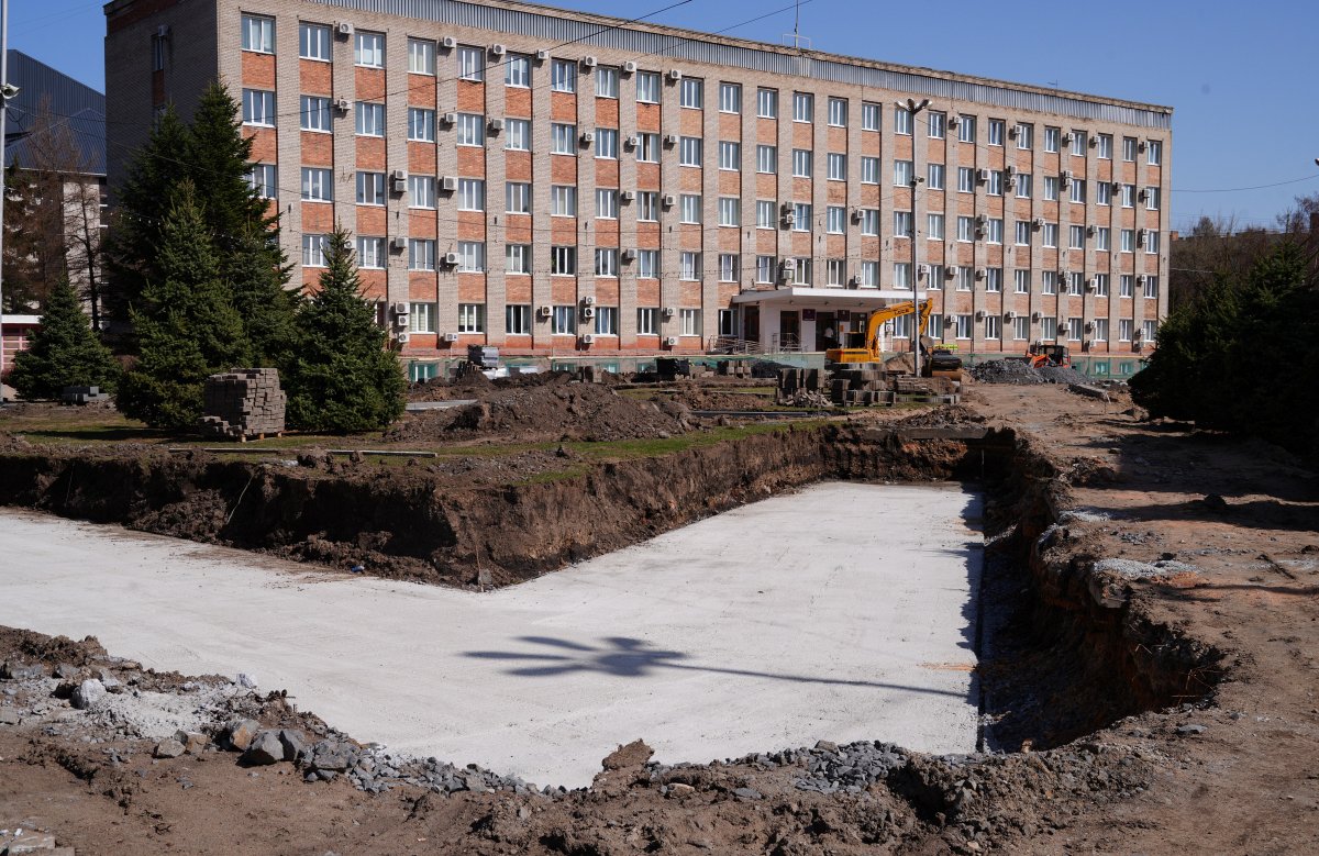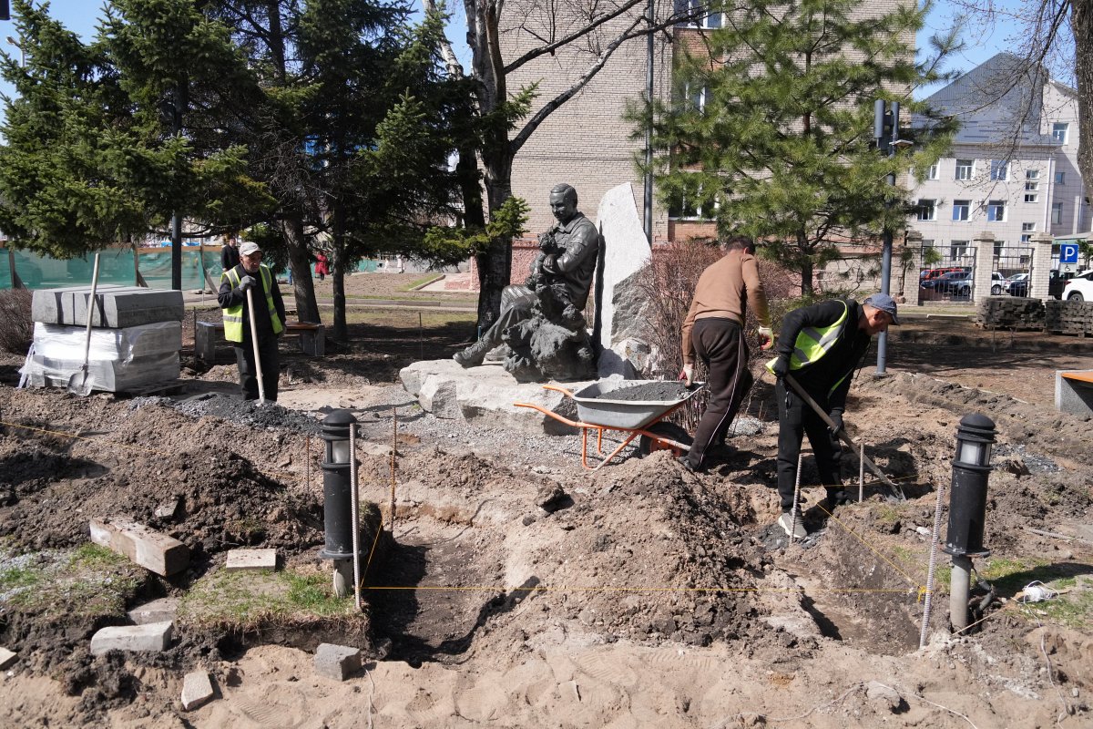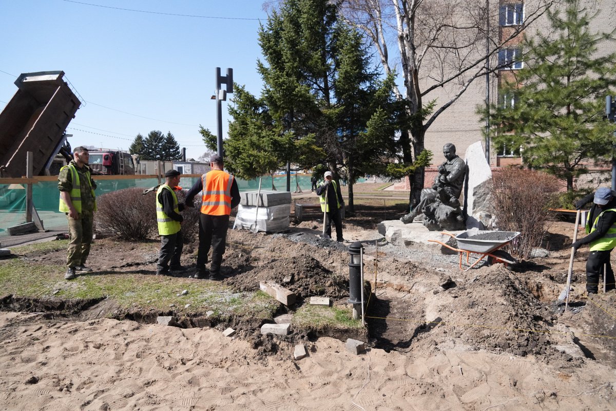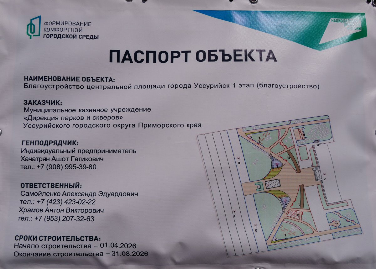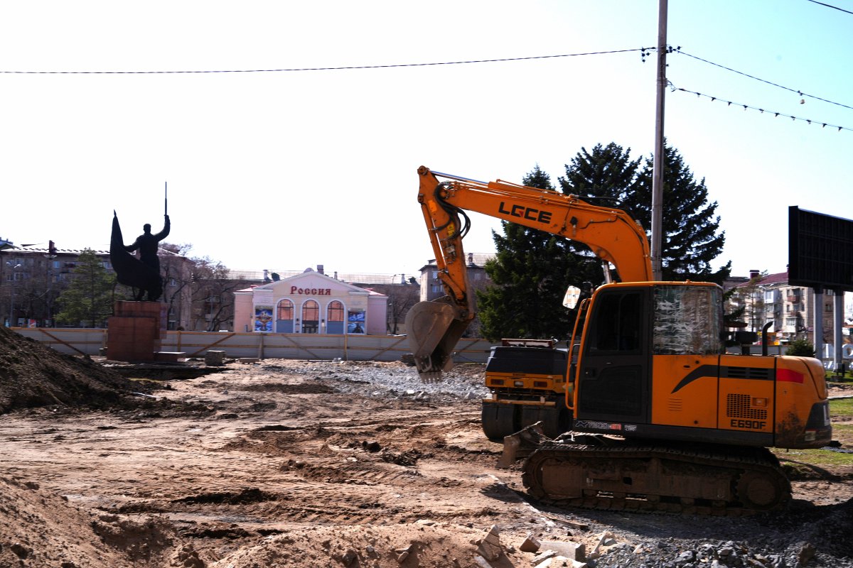 В Уссурийске идет масштабный ремонт центральной площади. Активные работы начались в марте 2026 года. Сейчас ведется демонтаж устаревших фонтанов и снятие старого плиточного покрытия. Параллельно рабочие укладывают бордюрный камень, делают отсыпку оснований под навесы и информационный центр.