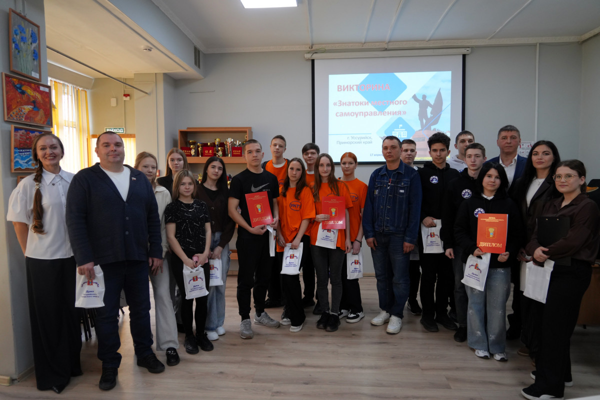 В преддверии Дня местного самоуправления, который в России ежегодно отмечается 21 апреля, в Центре народного творчества прошла познавательная игра-викторина. Организатором мероприятия выступила Дума Уссурийского городского округа, ведущими мероприятия стали члены Молодежного Совета, а непосредственными участниками явились студенты трех учебных заведений нашего города. Возглавили команды депутаты уссурийской Думы Владимир Грабчук, Максим Лукичев и Дмитрий Сурков.